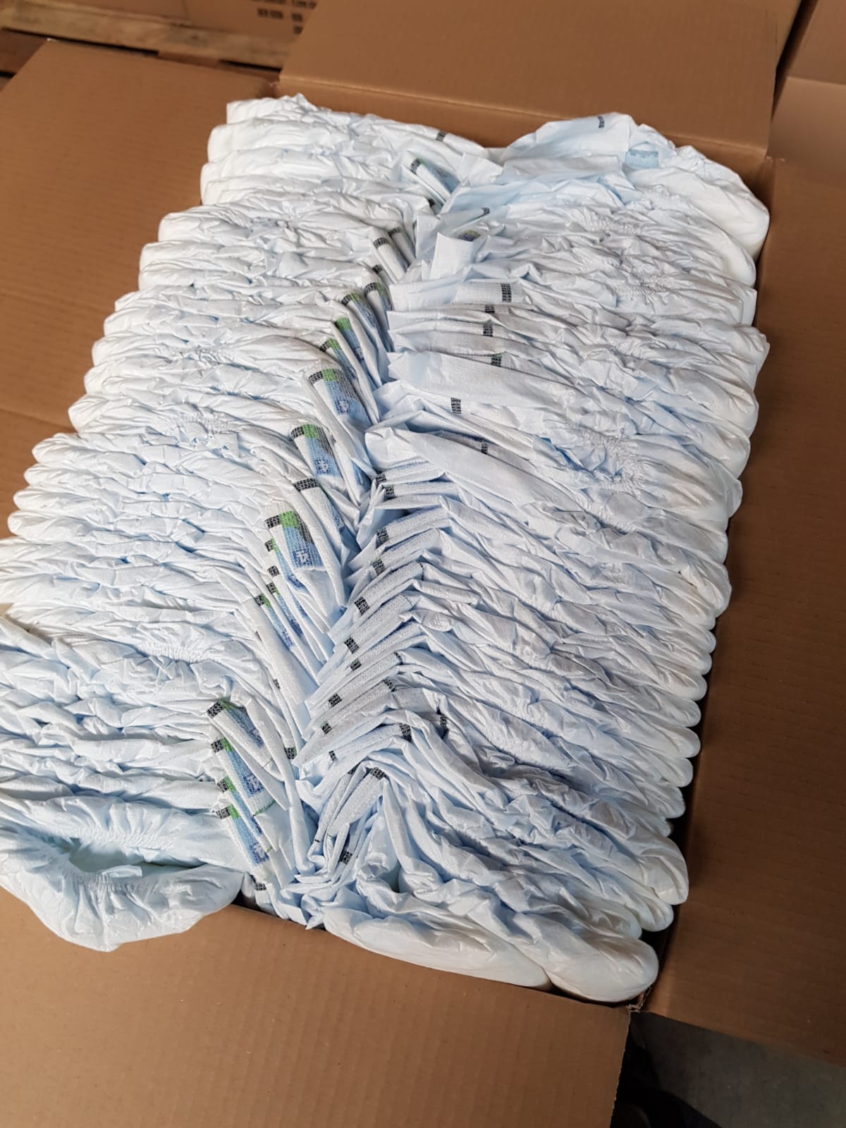 Incontinence products (Adult diapers) and Feminine Hygiene as first choice, second grade, bulk and compressed bales.